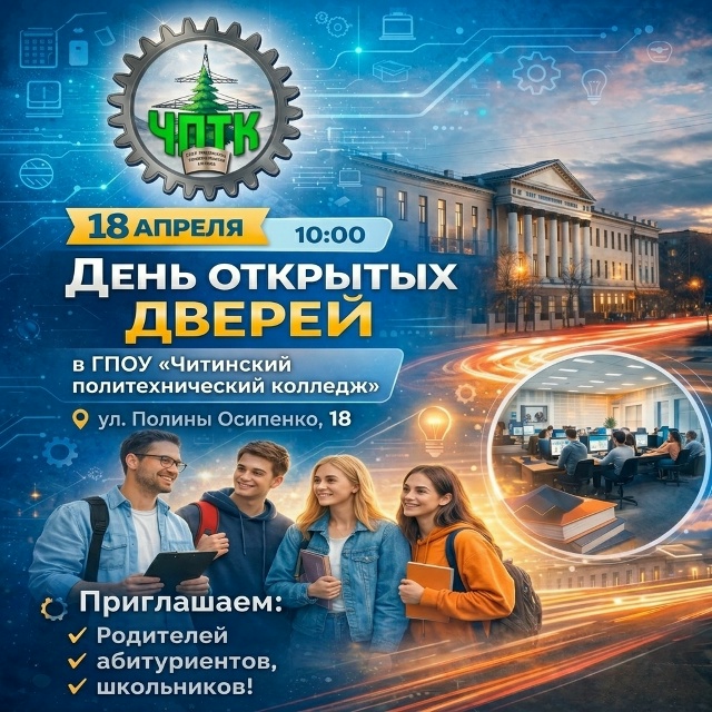 Дорогие друзья! Приветствуем вас на официальном сайте ГПОУ "Читинский политехнический колледж". Здесь вы получите информацию об основных направлениях работы колледжа, правилах приема, перечне специальностей, по которым ведется обучение, о нашей жизни, внеклассной работе, достигнутых результатах. А это видео познакомит вас с основными разделами сайта.