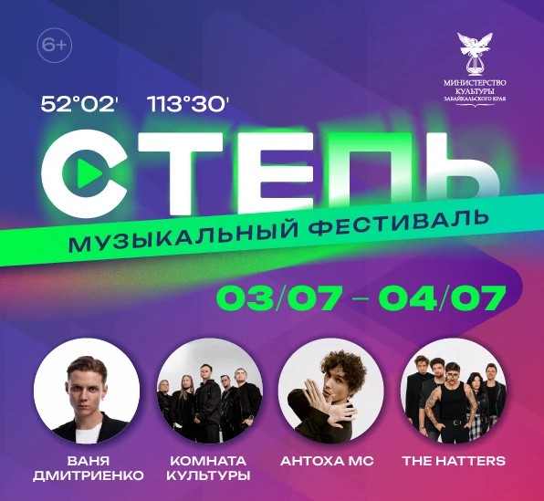 Министерство культуры Забайкальского края информирует о проведении мультикультурного фестиваля «Степь», который состоится в селе Александровка в период с 3 по 4 июля 2026 года. Цель фестиваля — популяризация культурного разнообразия через музыку и искусство, а также создание безопасной и творческой среды для молодежи...