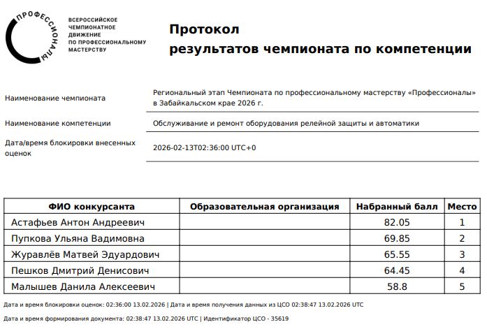 14 февраля 2026 г. состоялось закрытие Регионального этапа Чемпионата по профессиональному мастерству «Профессионалы» в Забайкальском крае.