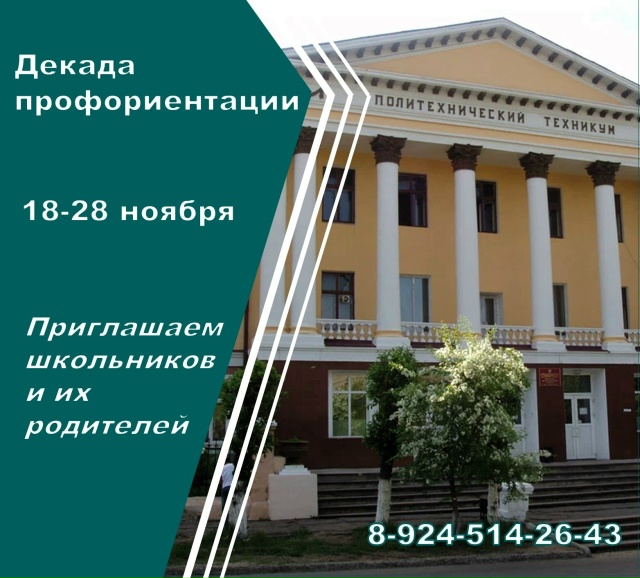 Пора погрузиться в мир профессий. Это мы обращаемся к сегодняшним школьникам, которые через год, возможно, станут студентами нашего колледжа. Мы объявляем о старте Единой декады профориентации. И приглашаем старшеклассников и их родителей принять участие в разнообразных мероприятиях этих 10 дней...