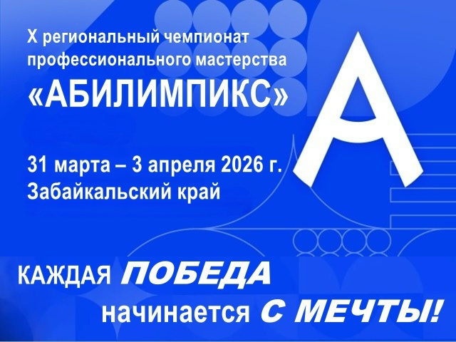 Каждая победа начинается с мечты! Под таким девизом с 31 марта по 3 апреля в Забайкальском крае пройдёт Х Региональный чемпионат по профессиональному мастерству «Абилимпикс». Это уникальное событие, открывающее двери для талантливых молодых людей и взрослых старше 14 лет, имеющих инвалидность или ограниченные возможности здоровья.