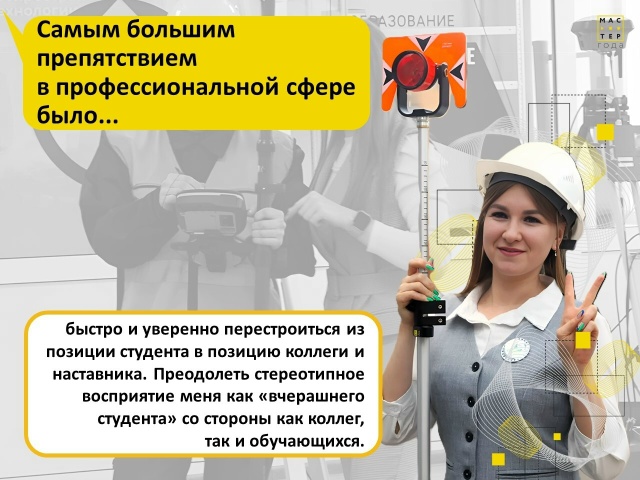 Самым большим препятствием в профессиональной сфере было быстро и уверенно перестроиться из позиции студента в позицию коллеги и наставника. Преодолеть стереотипное восприятие меня как «вчерашнего студента» со стороны как коллег, так и обучающихся. Однако мое знание колледжа, его традиций и, главное, студенческой психологии стало не препятствием, а уникальным преимуществом. Я понимаю, с какими трудностями сталкиваются студенты на этой специальности, и это помогает мне находить с ними общий язык и выстраивать эффективный учебный процесс.