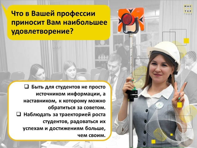 Первое - быть для студентов не просто источником информации, а наставником, к которому можно обратиться за советом. Когда выпускники спустя время пишут или приходят и говорят, что какой-то наш разговор помог им определиться в профессии или в жизни, — это бесценно.