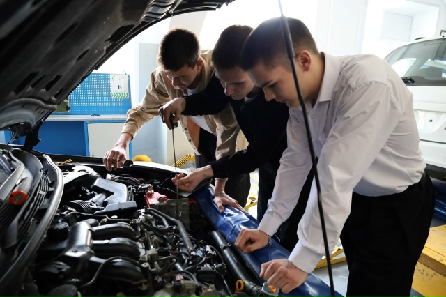 Затем все полученные знания сразу же применялись на практике в автомастерской: студенты диагностировали неисправности, проводили обслуживание и ремонт, используя новые термины в живом общении.