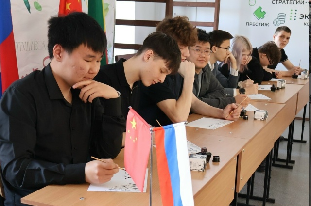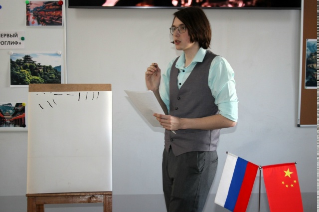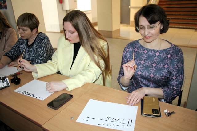 Под руководством Артема Алексеевича участники познакомились с основами китайской каллиграфии, узнали о символике иероглифов и попробовали самостоятельно вывести свой первый знак.