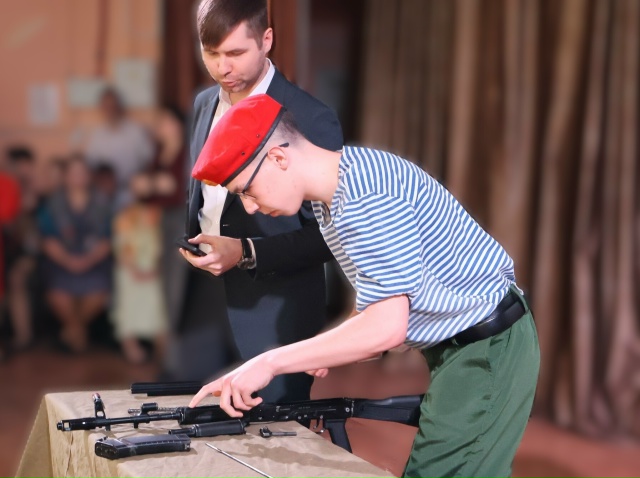 Четыре команды сильных, ловких, талантливых, выносливых парней нашего колледжа сошлись на сцене актового зала в традиционной конкурсной программе «Во славу Отечества». Сборные команды отделений в череде сменяющих друг друга конкурсов доказывали, что они достойные защитники Отечества. Команды демонстрировали военную выправку и строевую подготовку, умение быстро разбирать и собирать автомат, физическую силу и выносливость, зоркость и меткость, творческие способности.