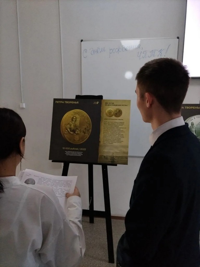 Волонтеры отряда "ЗабФин" представили выставку памятных монет Банка России "Петра творенья" и провели экскурсию среди обучающихся колледжа, посвящённую памятным монетам, связанную с Петровской эпохой. Фотовыставка монет, приурочена к 350-летию со дня рождения первого российского императора. Экспозиция рассказывает о самых значимых событиях Петровской эпохи-освоение новых городов, денежной и образовательной реформах, создание регулярной армии и военного флота.