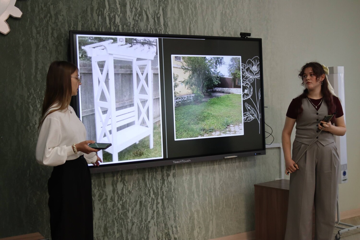 Девушки в своих проектах по благоустройству предложили заменить ограждение, обновить зону чтения на свежем воздухе, зону для проведения открытых мероприятий и собраний. Были предложены варианты замены дорожек, планируются малые архитектурные формы, цветники, живые изгороди, освещение.