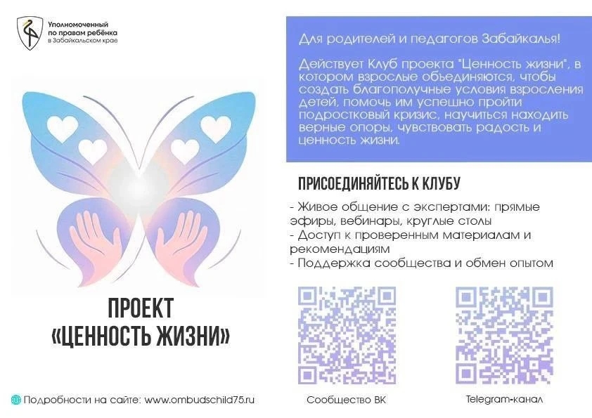 В рамках реализации на территории Забайкальского края проекта «Ценности жизни», направленного на профилактику суицидального поведения и укрепления психологического здоровья несовершеннолетних, в Красночикойском филиале ГПОУ Читинский политехнический колледж на информационный стенд в учебном корпусе и общежитии помещена информационная карточка Клуба «Ценности жизни»...