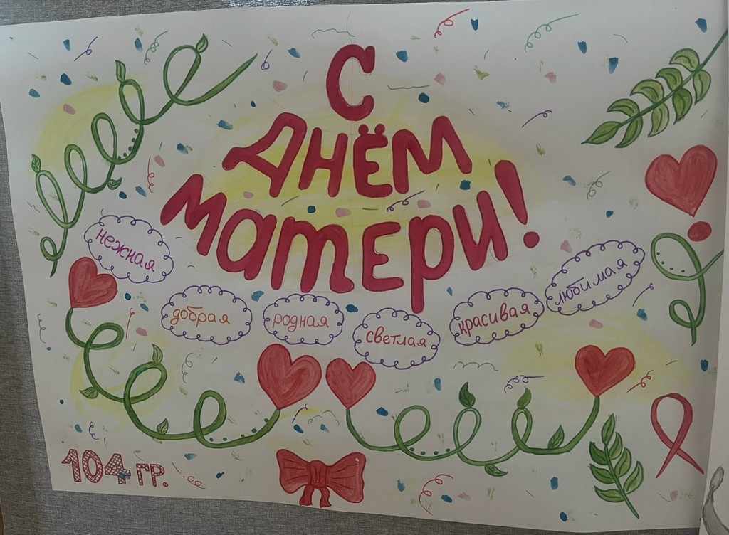 Кроме того, в честь Дня Матери был проведён конкурс на лучшую стенгазету, посвящённую этому замечательному празднику. Студенты проявили невероятный талант и креативность, создав яркие и душевные работы, каждая из которых была наполнена любовью и уважением к матерям. Выбрать победителей было непросто, но результаты таковы:
