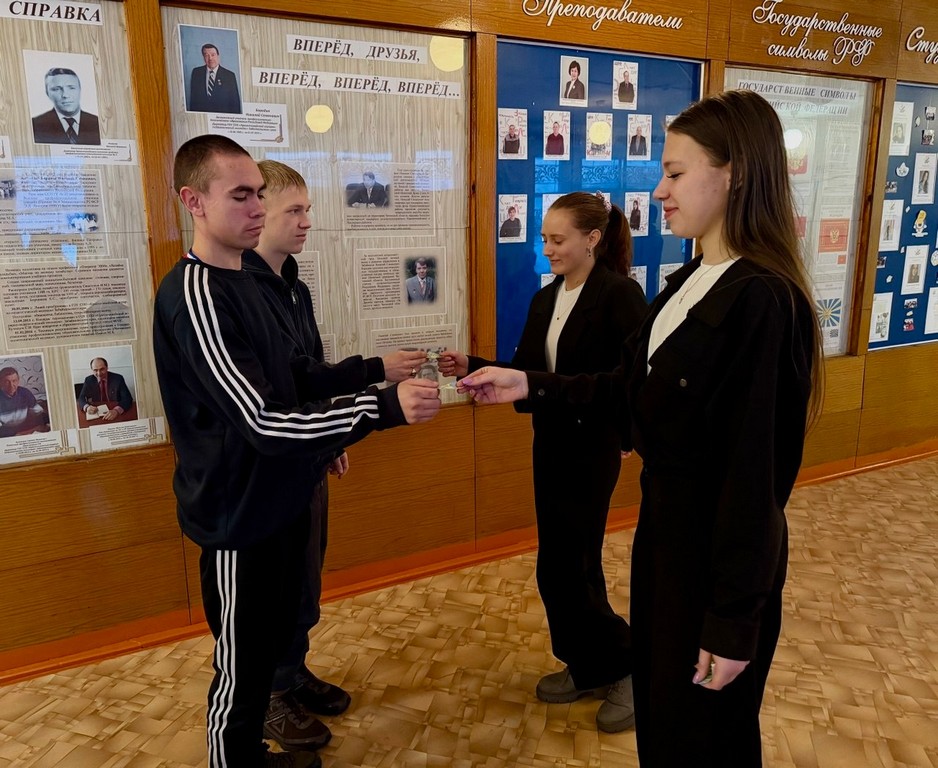 Праздничное настроение поддерживалось в течение всего дня. На переменах студентам вручали яркие поздравительные открытки — этот милый жест наполнил колледж улыбками и ощущением настоящего праздника!