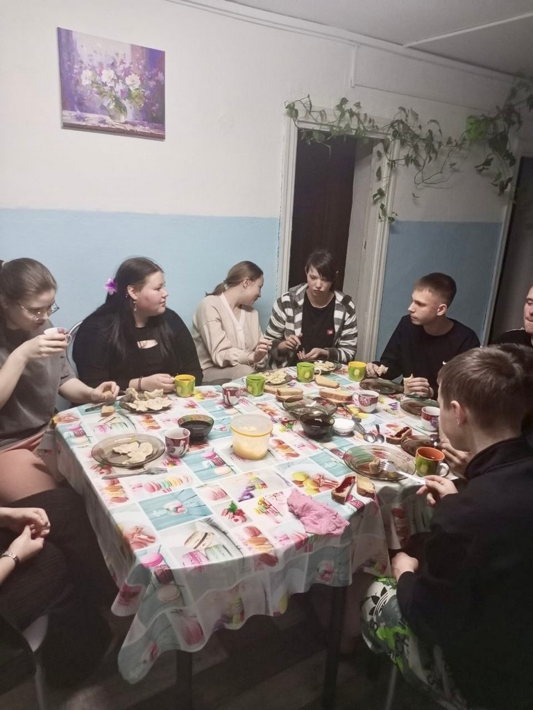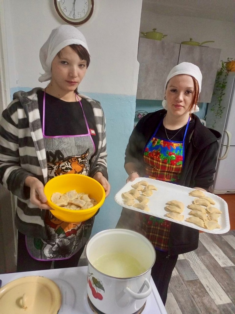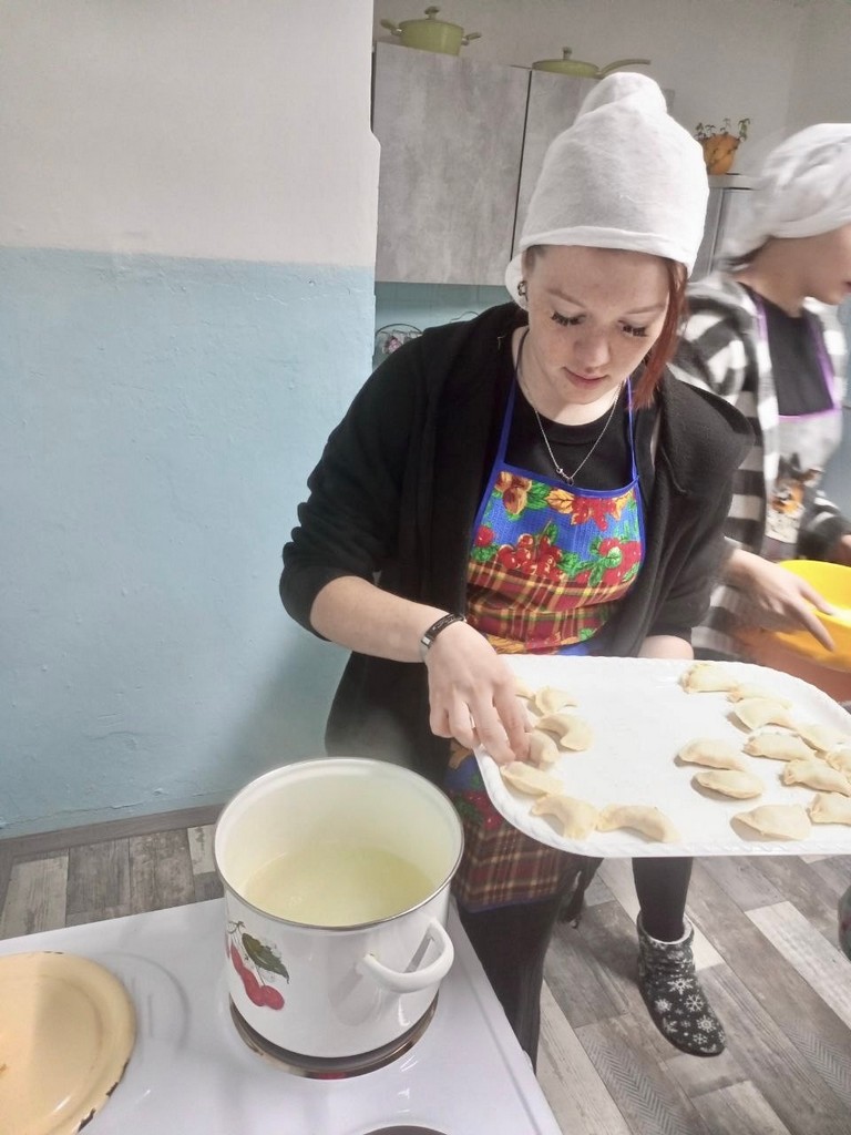 В клубе «Домострой» Красночикойского филиала «Читинский политехнический колледж» на этот раз студенты под руководством воспитателя Натальи Александровны учились готовить вареники.