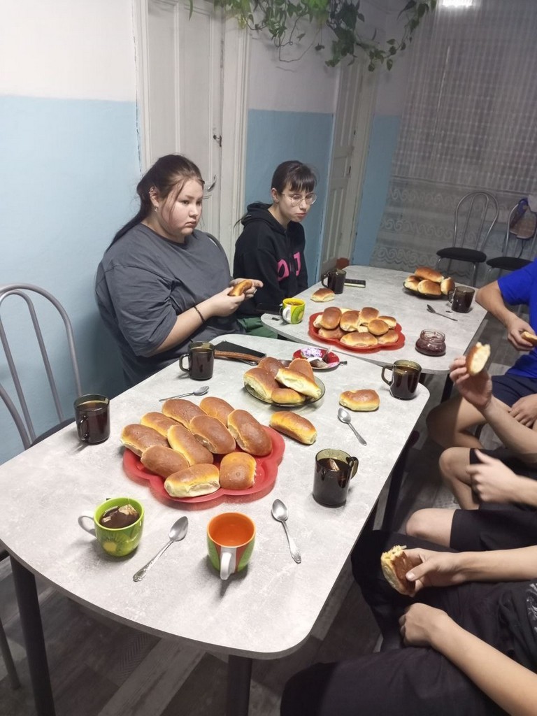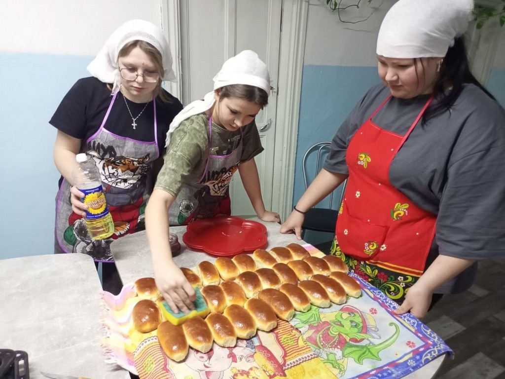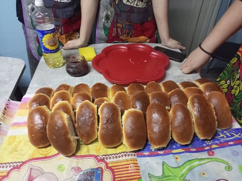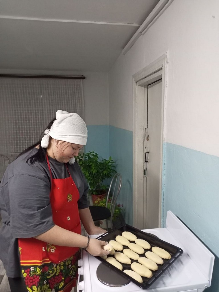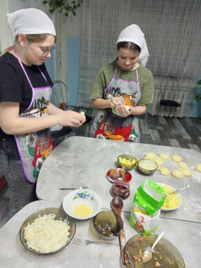 Прошли весь процесс: ставили опару, замешивали тесто, делали разные начинки из картошки и капусты - для пирожков, из риса с луком и рыбой для расстегаев (традиционное блюдо из кухни семейских). Работа с тестом - занятие трудоёмкое, но увлекательное. За разговорами не заметили, как пришло время вынимать готовые пирожки и расстегаи из духовки. С таким мастером, как наш воспитатель - Наталья Александровна, выпечка удалась на славу! А какой аромат!