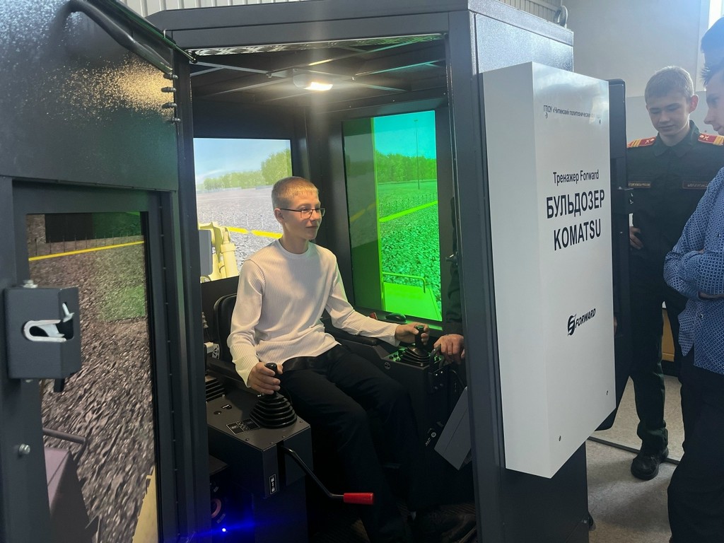 Но больше всего школьники были в восторге от Мастерской по компетенции "Машинист на открытых горных работах"! Там каждый смог ощутить себя за пультом управления экскаватора и бульдозера на новейших тренажерах!