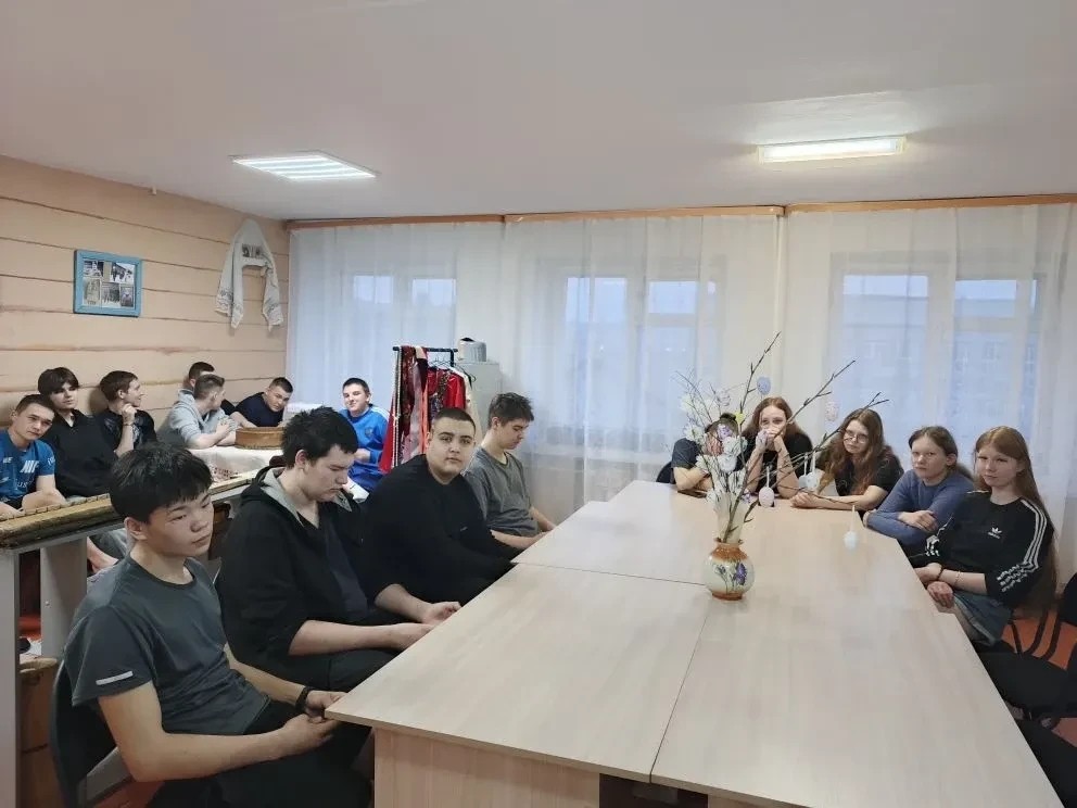 Студенты Красночикойского филиала ГПОУ "ЧПТК" погрузились в атмосферу главного православного праздника. В клубе «Домострой» под руководством воспитателя Татьяны Александровны состоялась беседа «Пасхальные традиции на Руси».