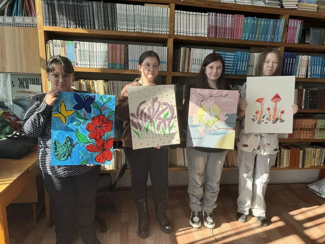 ✔️ Каждый студент продемонстрировал оригинальность своего видения мира.✔️ Работы отличались разнообразием техник исполнения и художественных решений.✔️ Сотрудники библиотеки высоко оценили трудолюбие и энтузиазм ребят.