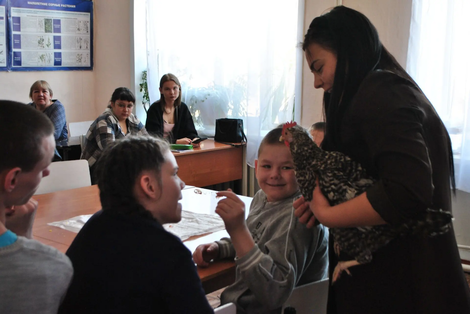 Затем урок перешел в цифровой формат: ребята работали на ноутбуках, собирая пазлы с изображением курицы. Это позволило лучше изучить внешний вид птицы, обратить внимание на детали и развить наблюдательность.