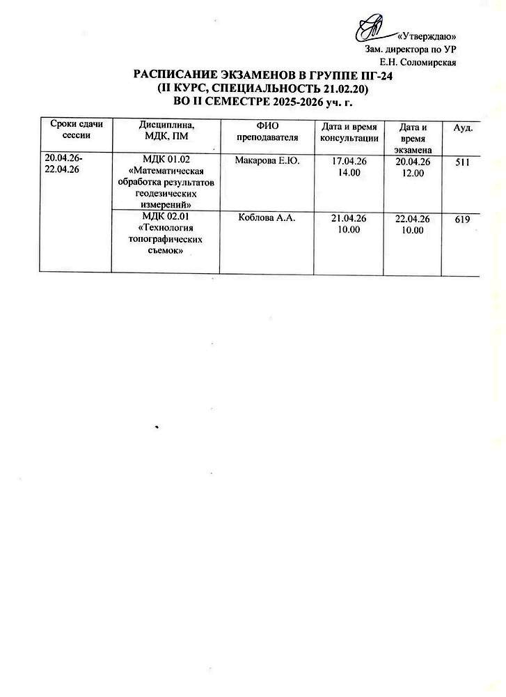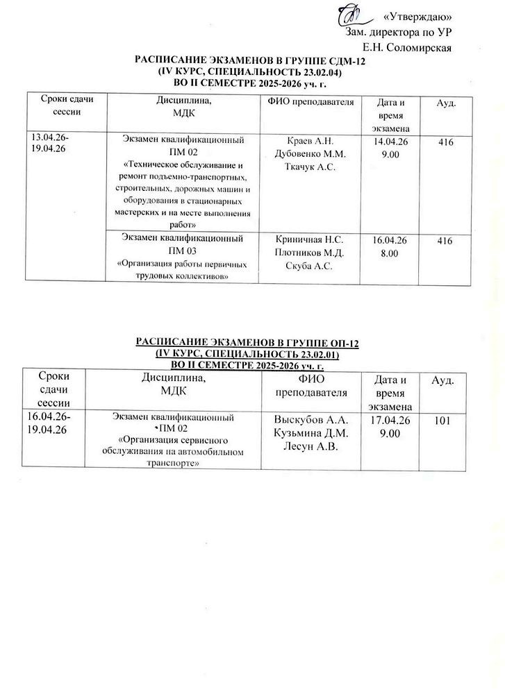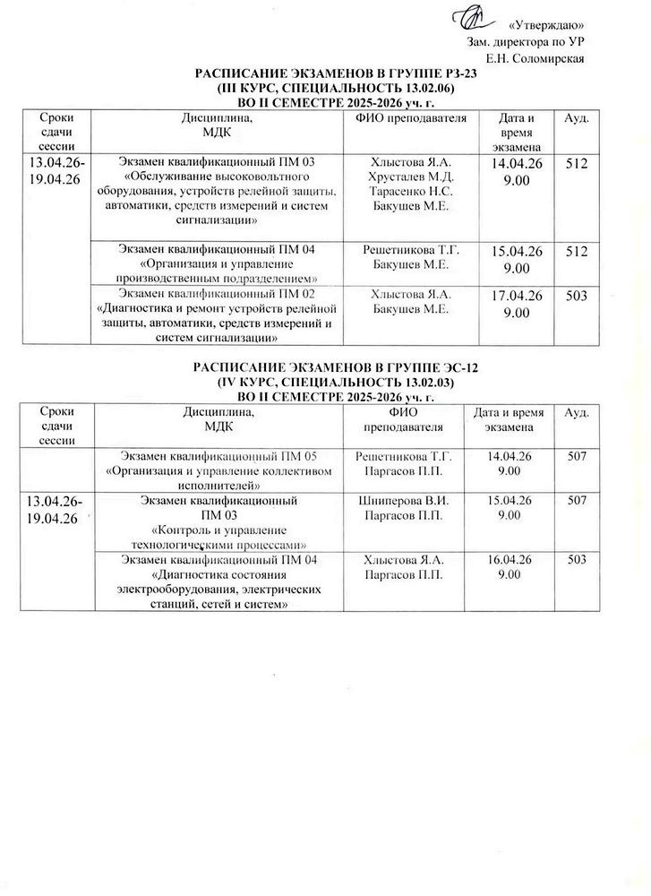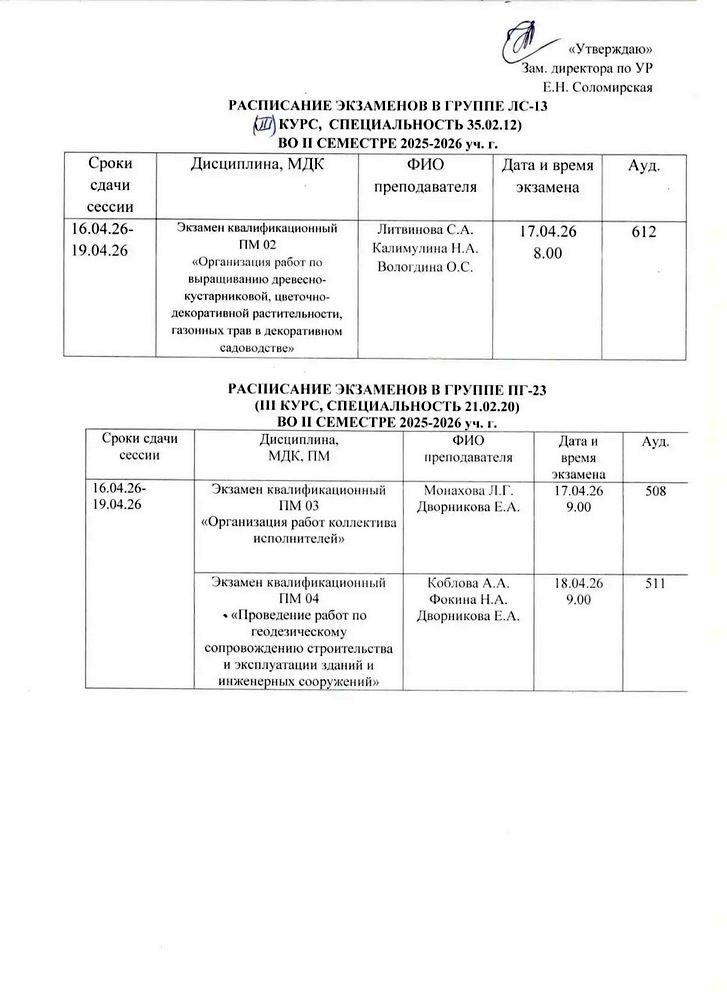 Расписание экзаменационной сессии, II семестр 2025-2026 учебного года