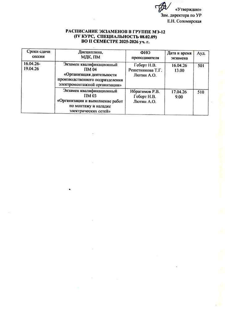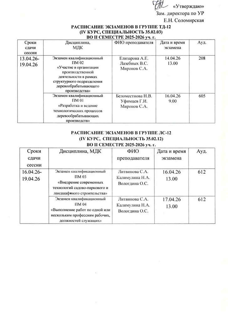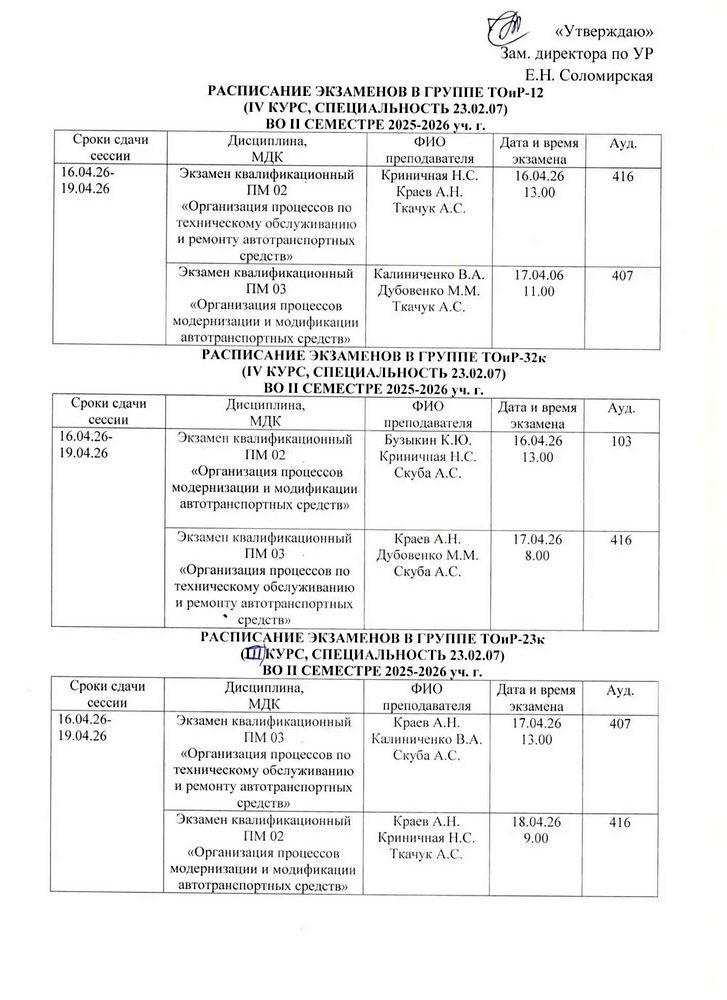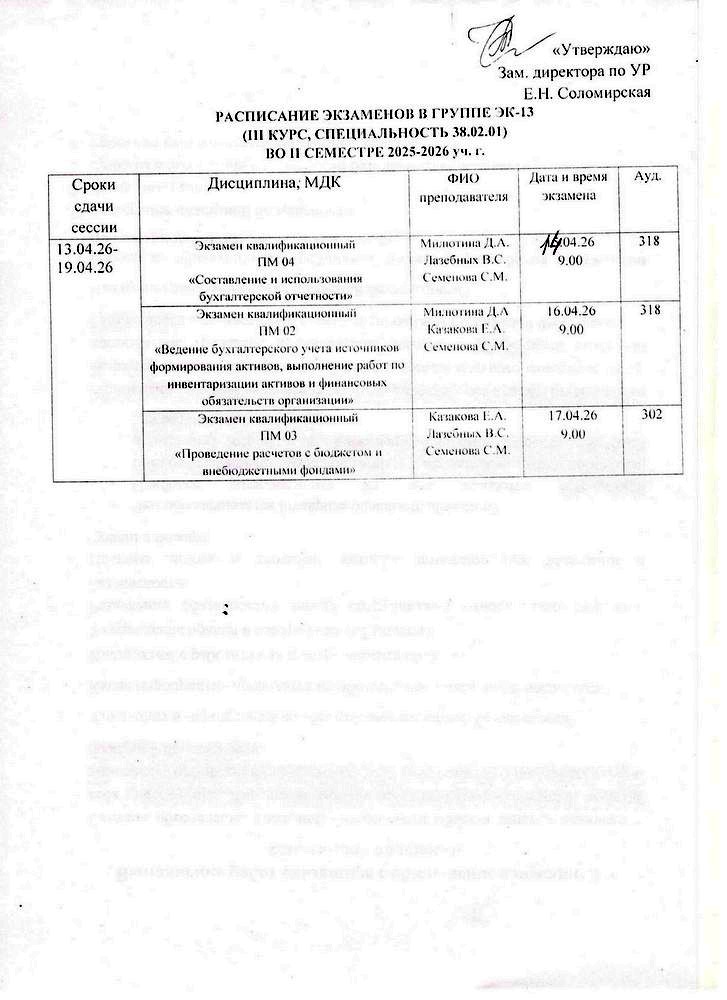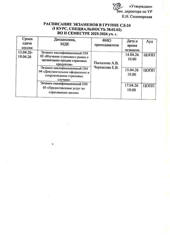 Расписание экзаменационной сессии, II семестр 2025-2026 учебного года